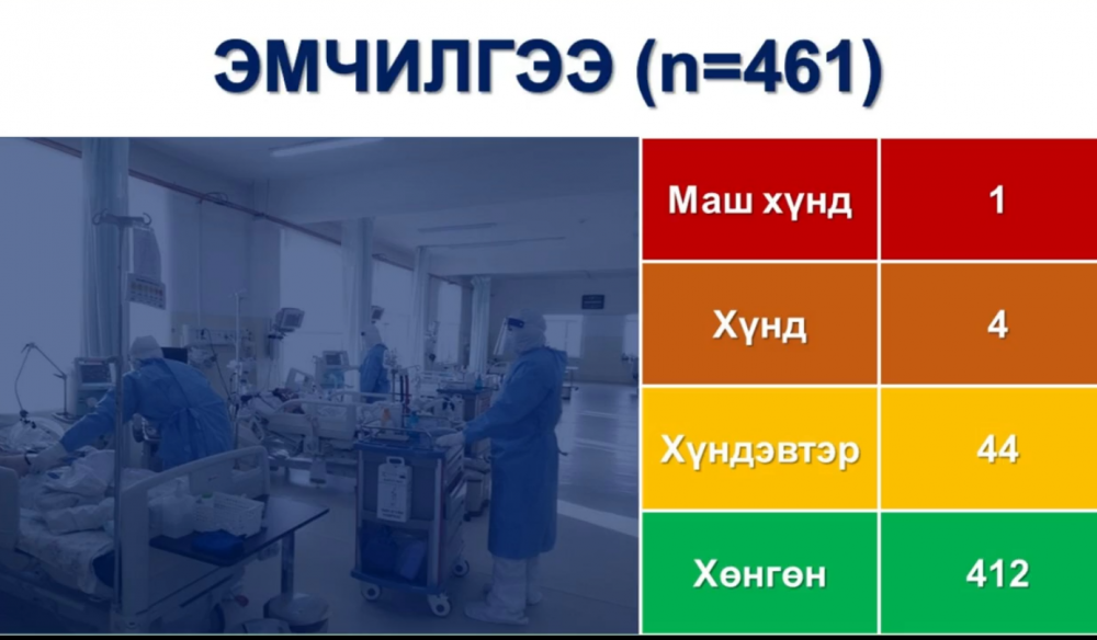Одоогоор 461 хүн эмчилгээнд байгаагаас 1 хүн маш хүнд байна.