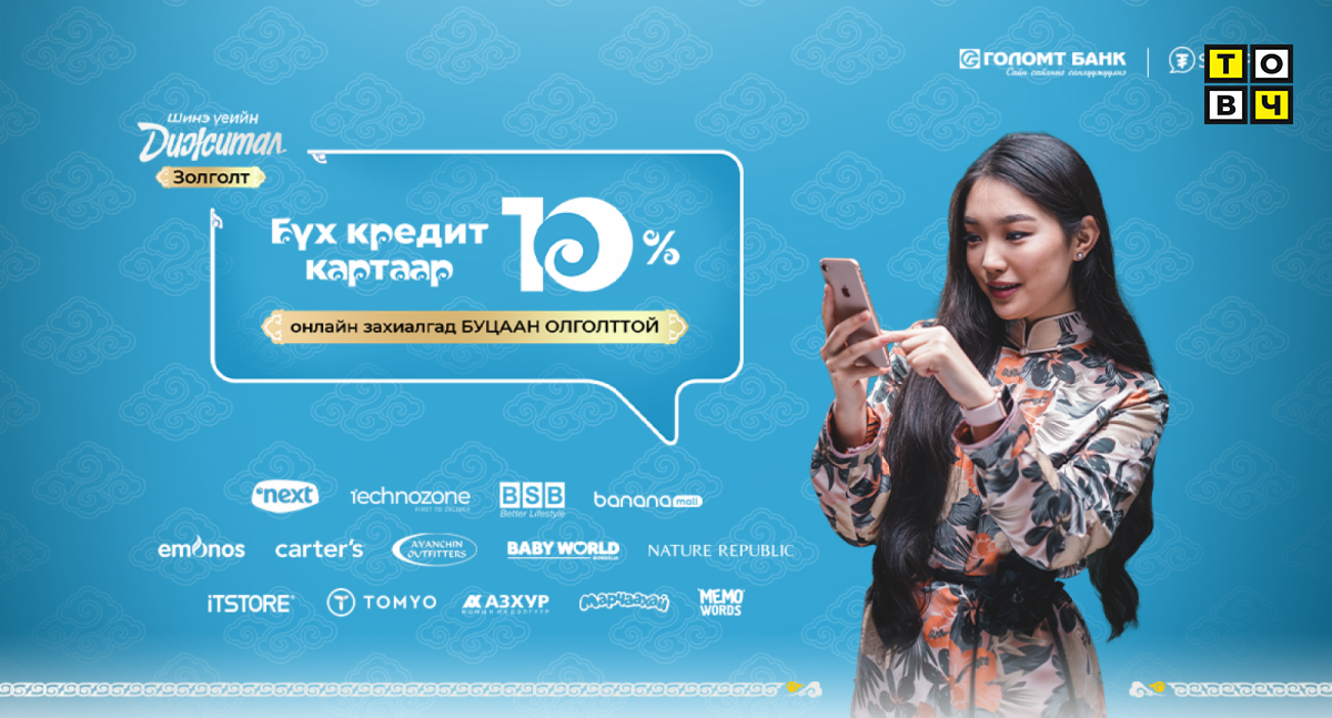 Уламжлалт сар шинийн баяраар хүссэн бараагаа сонгоод гэр бүлийнхэндээ хүргүүлэн баярлуулах буцаан олголттой “Дижитал золголт” хөтөлбөрийг Голомт банкнаас эрхэм харилцагчдадаа зориулж буйг санал болгож байна.