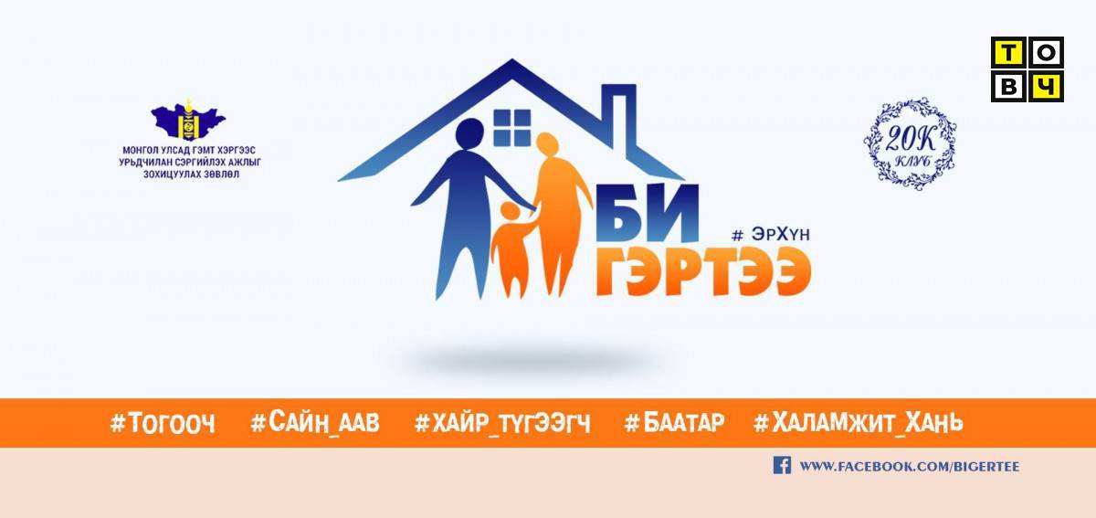 Гэмт хэргээс урьдчилан сэргийлэх ажлыг зохицуулах зөвлөлийн ажлын алба “20К клуб” ТББ хамтран Гэр бүлийн хүчирхийлэлтэй тэмцэх тухай хууль, Жендерийн эрх тэгш байдлыг хангах тухай хуулийг сурталчлах, жендэрт суурилсан хүчирхийллийн хор уршгийн талаар иргэд олон нийтийн мэдлэг ойлголтыг дээшлүүлэх зорилгоор Эр хүн “БИ ГЭРТЭЭ” аяныг санаачлан хэрэгжүүлж байна.