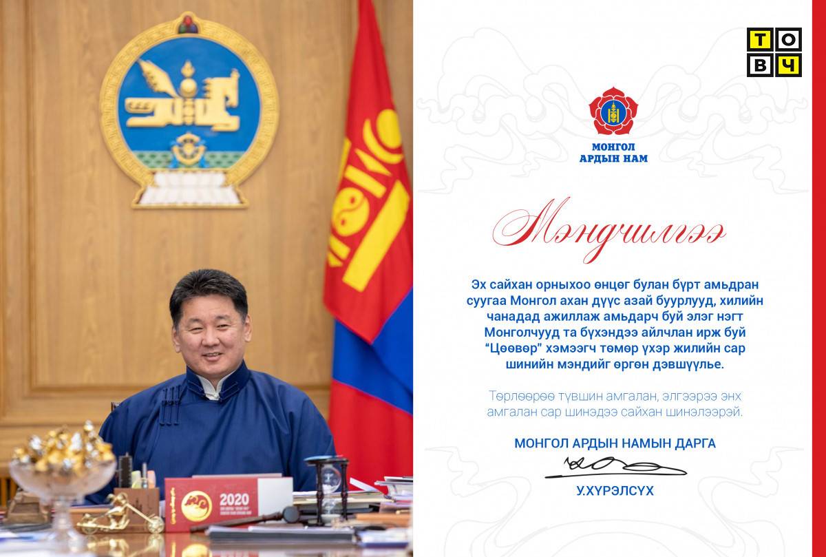 Мөн эх орныхоо тусгаар тогтнолыг сэргээн тогтоох чин хүсэл зорилгоор нэгдсэн эрэлхэг монгол эх орончдын байгуулсан улс төрийн ууган хүчин Монгол Ардын Нам үүсэн байгуулагдсаны түүхт 100 жилийн ой, Ардын хувьсгалын 100 жилийн ой гарч буй төмөр үхэр жилд тохиож байна. Улс орныхоо тусгаар тогтнол, үндэсний аюулгүй байдлын баталгаа болж нэгэн зууны түүхийг түүчээлсэн Монгол Ардын Нам эрх баригч улс төрийн хүчний хувьд алдаа оноо, амжилт бүтээлдээ дүгнэлт хийж, улс орныхоо ирээдүйн хөгжлийн зорилго зорилтыг хэлэлцэхээр намынхаа ХХХ Их хурлыг хуралдуулахаар зарлаад байна. Монгол ахан дүүс, азай буурлууд та бүхэндээ эрүүл энх, элбэг сайхан байж, улс орон маань цэцэглэн хөгжихийн ерөөл өргөе. Төрлөөрөө түвшин амгалан, элгээрээ энх амгалан сар шинэдээ сайхан шинэлээрэй. МОНГОЛ АРДЫН НАМЫН ДАРГА У.ХҮРЭЛСҮХ