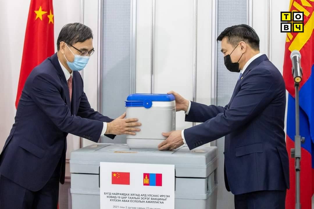 Монгол Улс хөрш орон БНХАУ-аас КОВИД-19 халдварт цар тахлын эсрэг Синофарм компанийн үйлдвэрлэсэн дархлаажуулалтын 300 мянган тун вакциныг хүлээж авлаа. Тус 150 мян/хүн тун вакциныг хүлээн авах ёслолын ажиллагаанд Монгол Улсын Шадар сайд, Улсын онцгой комиссын дарга С.Амарсайхан, Эрүүл мэндийн сайд С.Энхболд, Батлан хамгаалахын сайд Г.Сайханбаяр, Гадаад харилцааны яамны Төрийн нарийн бичгийн дарга Н.Анхбаяр, БНХАУ-аас Монгол Улсад суугаа Элчин сайд Чай Вэньруй зэрэг албаны хүмүүс оролцов.