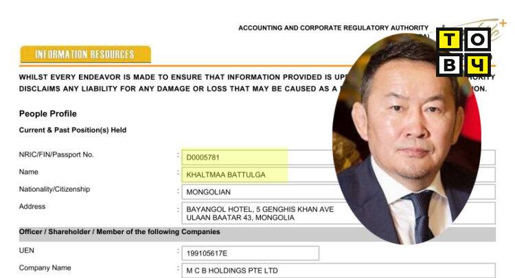 Х.Баттулгын D0005781 дугаартай дипломат паспорт дээр “Эм-Си-Би Холдингс” Пи-Ти-И /MCB Holdings PTE/ буюу Money Come Back гэх оффшор компани, түүний охин Б.Намууны A0020586 дугаартай албан пасспорт дээр Blue Sky Partners PTE компаниуд бүртгэлтэй нь Сингапурын Төрийн мэдээллийн сангийн баримтаар нотлогдож байна.