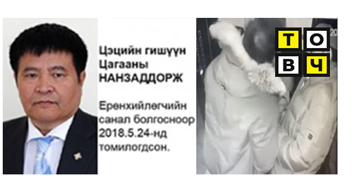 Энэ үйл явдалтай зэрэгцээд Цэцийн гишүүн Ц.Нанзаддорж шүүхийн хонгилын менежер гэх Б.Баасанцогтод Зам тээврийн сайд асан Д.Ганбатын өгсөн 5 тэрбум төгрөгийн онц их хэмжээний хахуулийг зуучлан дамжуулсан баримтыг Өдөр тутмын сонинуудын эрэн сурвалжлах нэгдэл дэлгэлээ.