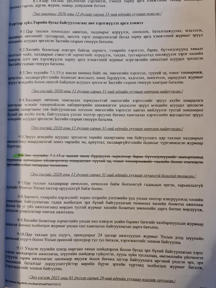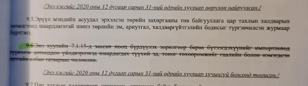 Гэвч уг заалт 2020 оны 12 дугаар сарын 31-ний өдөр хүчингүй болжээ. Өөрөөр хэлбэл эм эмнэлгийн хэрэгсэл дотооддоо үйлдвэрлэхэд шаардагдах түүхий эд, тоног төхөөрөмжөөс гаалийн болон нэмэгдсэн өртгийн албан татвар авч эхэлсэн байна.