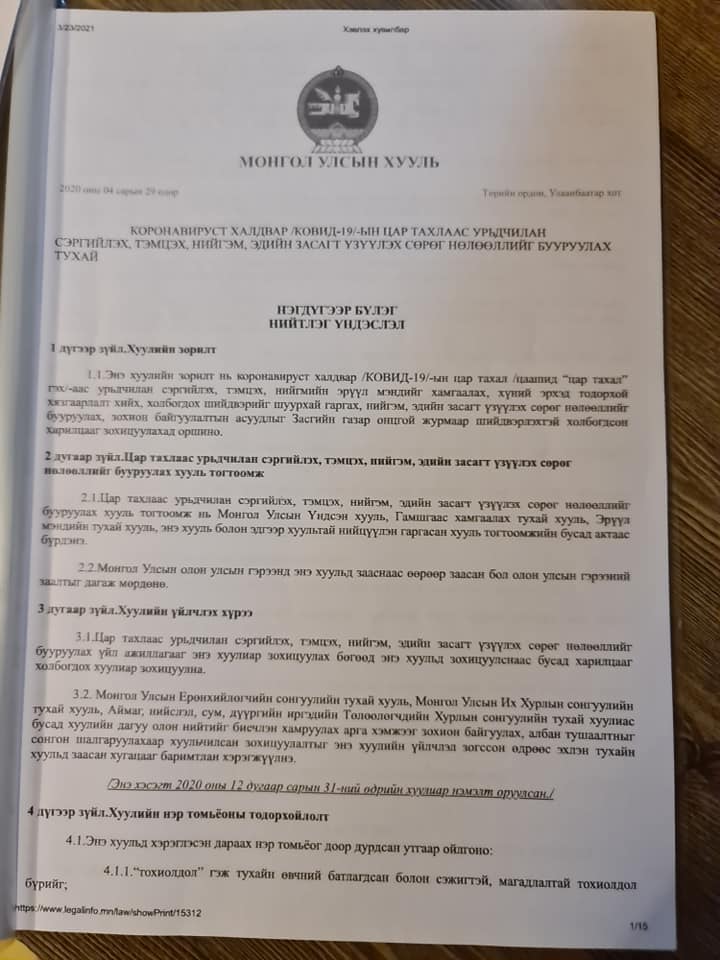 Харамсалтай нь Улсын Онцгой комиссоос эхлээд Нийслэлийн Онцгой комисс хүртэл энэ хуулийн үзэл санааг нь дагаж мөрдөөгүй. Манайх дотооддоо олон улсын шаардлага хангасан хоёр янзын хамгаалалтын хувцас, бээлий, маск үйлдвэрлэдэг. Тэд дотоодын хэрэгцээгээ хангаад зогсохгүй экспортод ч гаргах бүрэн боломжтой. Зарим нь олон улсын зах зээл гаргаад эхэлчихсэн.