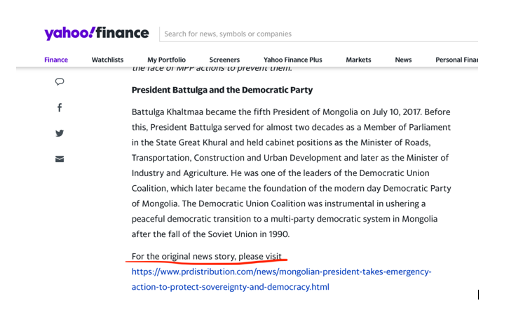 Манай Ардчилсан нам болон Х.Баттулгатай холбоотой мэдээллийг “DCI” фирмийн Дэд ерөнхийлөгч Кэвин Ивэрс болон ахлах ажилтан Райн Грилло, төслийн зохицуулагч Ребэкка Невилл зэрэг хүмүүс хариуцан олон улсын хэвлэлүүдэд түгээх ажлыг хийсэн нь удаа дараагийн и-мейлүүдээс харагдлаа. Yahoo зэрэг уншигчдад танил болсон сайтууд тэдний гаргасан мэдээллийг төлбөртэй хэсэгтээ нийтэлсэн бөгөөд нийтлэлийн төгсгөлд уг мэдээллийн эх сурвалж хэмээн өөр холбоосуудыг зааж өгсөн байгаа. Тэрхүү холбоосоор нэвтэрвэл “PR Distribution” гэх төлбөртэйгээр хэвлэлийн мэдээ түгээдэг агентлагийн вэб сайт бий. Улмаар “Монгол Улсын Ерөнхийлөгч ардчилал, бүрэн эрхэт байдлаа хамгаалах яаралтай алхам хийлээ” гэх гарчигтай хэвлэлийн мэдээг Монгол Улсын Ерөнхийлөгчийн Тамгын газраас гаргуулсан төдийгүй харилцах хэсэгт Ерөнхийлөгчийн Хэвлэл, мэдээллийн алба гэдгийг бичсэн байна. Мөн “Энэхүү хэвлэлийн мэдээ нь захиалагчийн бэлтгэсэн нийтлэл бөгөөд агуулгын хувьд “PR Distribution” болон үүнийг нийтэлсэн бусад редакцын агуулгатай хамааралгүй болно” гэсэн тайлбар бичжээ.