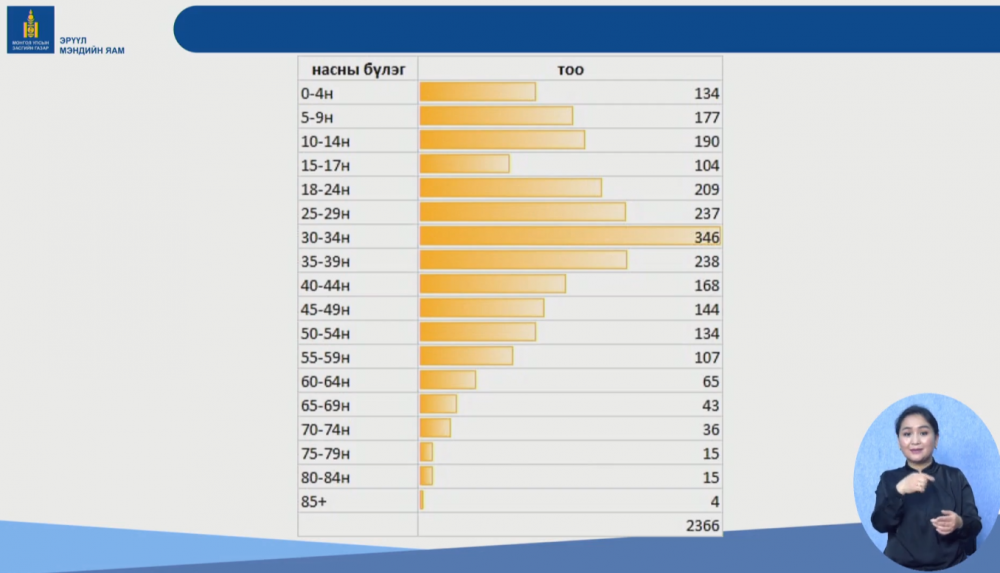 Халдвар авсан иргэдийн дийлэнх нь 30-34 насныхан байгаа бол 25-29, 35-39 насныхан мөн л халдвар авсаар байна.