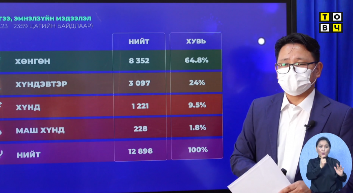 Сүүлийн 24 цагт нийт 11 гаруй мянган хүнээс шинжилгээ авахад 2366 хүнээс халдвар илэрч, 13 хүн нас баржээ.