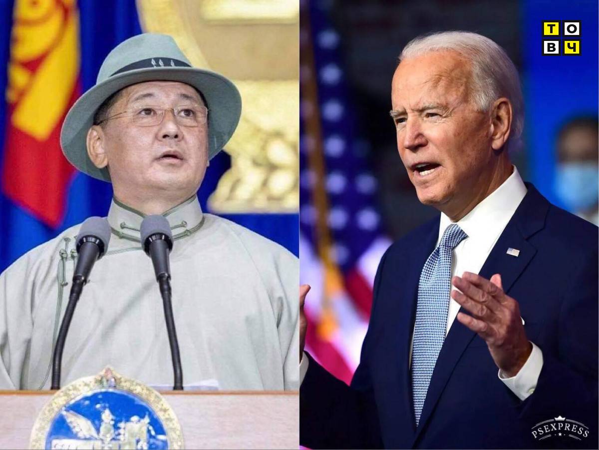 Өнөөдөр тангараг өргөсөн Монгол Улсын Ерөнхийлөгч Ухнаагийн Хүрэлсүхэд АНУ-ын Ерөнхийлөгч Жо Байден баяр хүргэж, баярын цахилгаан илгээлээ.