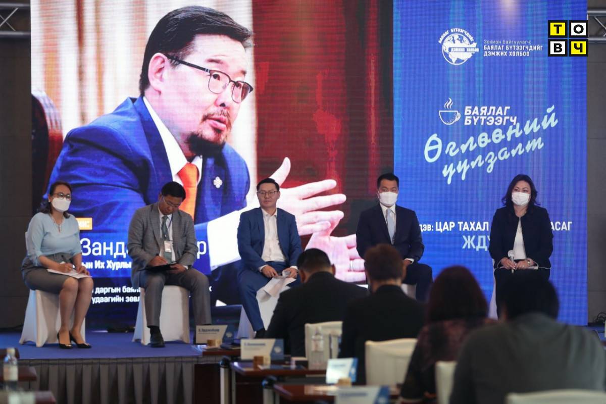 Улсын Их Хурлаас цар тахлын үеийн эдийн засгийг эрчимжүүлэх, экспортыг нэмэгдүүлэх, импортыг орлох үндэсний үйлдвэрлэлийг дэмжих, төр-хувийн хэвшлийн түншлэлийг бэхжүүлэх, хөрөнгө оруулалтыг нэмэгдүүлэх хууль эрх зүйн орчныг бүрдүүлэхийн төлөө ажиллаж байгаа. Баялаг бүтээгчдээ дэмжих ажилд хамтран оролцож, шүүмжлэгч няцаагч биш, нэг зүгт харж, нэг бодлогоор бизнесийн орчноо хөгжүүлэх цаг болсон. Нэмүү өртөг шингээж байгаа үйлдвэрлэгчид бол жинхэнэ баялаг бүтээгчид гэдгийг Улсын Их Хурлын дарга Г.Занданшатар онцоллоо.