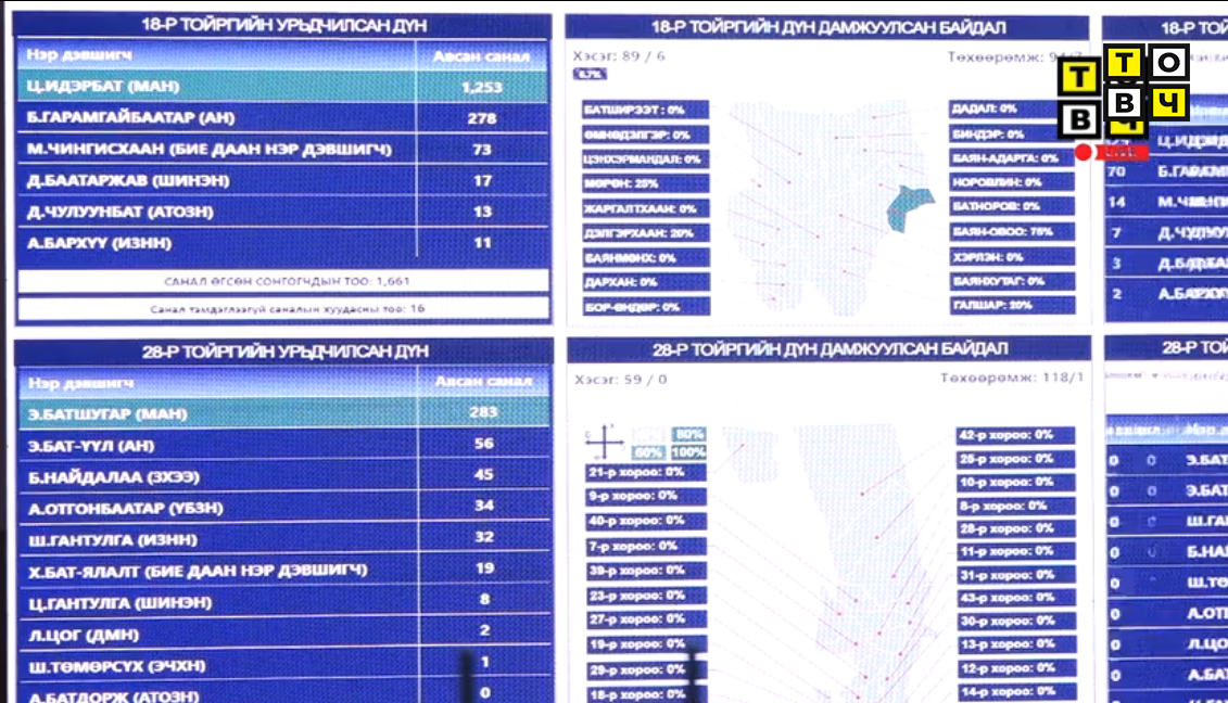 Тодруулбал цагийн өмнөх байдлаар сонгуулийн ирц хангалтгүй, 50 хувьд хүрээгүй байсан юм. Яг одоо сонгуулийн ирц болон дүн нэгтгэгдэж байна.