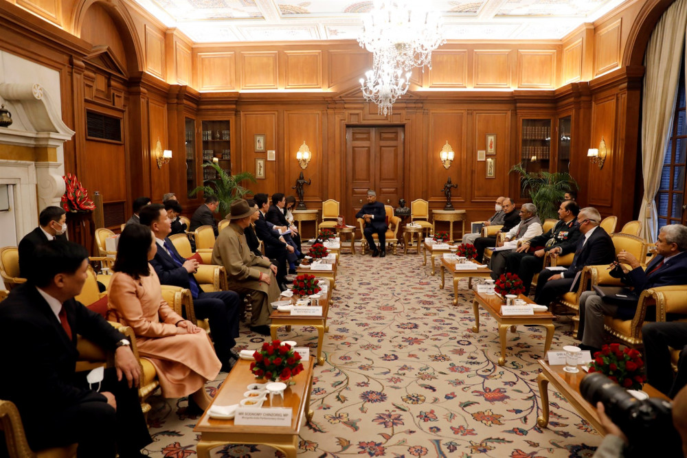 Бараалхалтын үеэр тэрбээр “Эрхэмсэг ноён Ерөнхийлөгч Тантай Энэтхэг Улсад хийж буй айлчлалынхаа үеэр нүүр учран уулзах завшаан тохиолдсонд нэн баяртай байна. Энэтхэг Улс бол манай оюун санааны хөрш бөгөөд нэн чухал стратегийн түнш билээ. Юуны өмнө Эрхэмсэг ноён Ерөнхийлөгч Танд Монгол Улсын Ерөнхийлөгч У.Хүрэлсүхийн халуун дотно мэндчилгээг уламжилж буйг минь хүлээн авна уу. Манай хоёр ард түмэн хэдий газарзүйн байршлын хувьд хол оршдог ч түүх соёлын ижил төсөөтэй зүйлсээр уламжлагдсан оюун санааны хэлхээ холбоо маань биднийг ямагт ойр дотно нөхөрлүүлж ирсэн билээ. Монголын ард түмэн Энэтхэг Улсыг Бурхны орон хэмээн хүндэтгэж ирсэн. Монгол Улс Энэтхэг Улстай тогтоосон стратегийн түншлэлийн харилцаагаа улам гүнзгийрүүлэн бэхжүүлэхийн төлөө байна. Эрхэмсэг ноён Ерөнхийлөгч Таныг манай оронд морилон айлчлахыг урья” гэв.