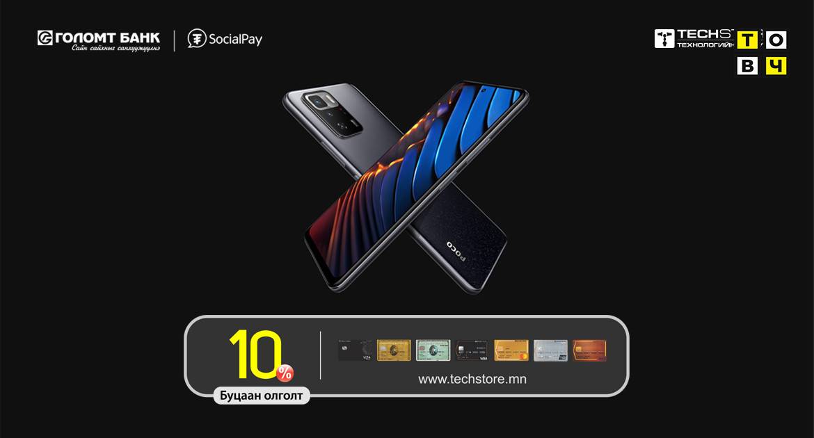 Голомт банк картын ээлжит урамшууллаа Techstore-тай хамтран хэрэгжүүлж эхэллээ. Харилцагч та Techstore-ийн салбар дэлгүүр, www.techstore.mn онлайн худалдааны вэбсайтаас Голомт банкны бүх төрлийн кредит карт болон SocialPay аппликэйшн ашиглан худалдан авалт хийснээр 10%-ийн буцаан олголт авах боломжтой боллоо. Нэг харилцагчид олгох буцаан олголтын дээд хэмжээ 300,000₮ ба буцаан олголт худалдан авалт хийснээс хойш 1 өдрийн дараа таны дансанд орох болно. Techstore-тай хамтарсан энэхүү урамшуулал нь 12-р сарын 03-17-ны хооронд үргэлжлэх тул харилцагч та амжиж урамшуулалдаа хамрагдаарай.