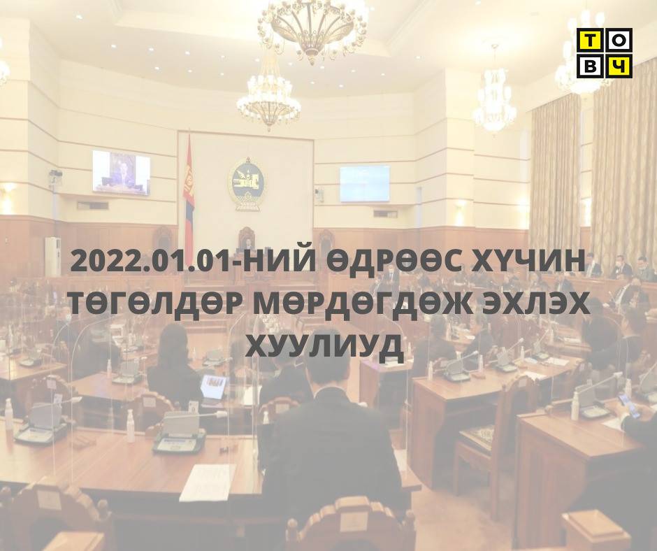 2022 оны нэгдүгээр сарын нэгний өдрөөс хүчин төгөлдөр мөрдөгдөж эхлэх хуулиудыг танилцуулж байна.
