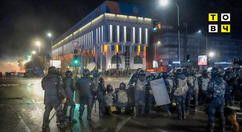 Мягмар гарагт Алматы хотын цагдаа нар хотын захиргаа руу дайран орох гэж оролдсон хэдэн зуун жагсагчийг тараахын тулд нулимс асгаруулагч хий, чимээ гэрэл гаргагч гранат ашигласан байна.