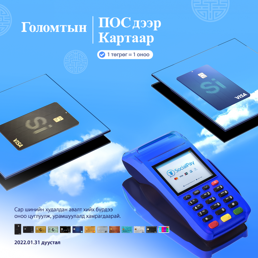 Та цагаан сардаа бэлтгэж, худалдан авалт хийхдээ Голомт банкны ПОС дээр, Голомт банкны картаар төлбөр төлөөд урамшууллын оноо цуглуулаарай. Та 10,000 төгрөгөөс дээш үнийн дүнтэй худалдан авалт хийж урамшуулалд оролцох ба таны худалдан авалтын дүнгийн 1 төгрөг бүрд 1 оноо бодогдох болно. Өөрөөр хэлбэл та 100,000 төгрөгөөр худалдан авалт хийсэн тохиолдолд танд 100,000 оноо нэмэгдэнэ гэсэн үг юм.