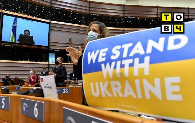 Мягмар гарагт болсон ЕП-ын ээлжит бус чуулганы сэдэвчилсэн сонсголын үеэр парламентын дарга Роберта Мецола, Европын Зөвлөлийн дарга Шарль Мишель, Европын Комиссын дарга Урсула фон дер Ляйен нар Украины эрх баригчид ЕХ-нд элсэх хүсэлтээ албан ёсоор гаргасныг сайшааж, тус улс Европын гэр бүлийн нэг хэсэг гэдгээ батлан харуулсан учир дэмжиж байгаагаа илэрхийлжээ. Үүний зэрэгцээ, Европын Комиссын дарга мэдэгдэхдээ, энэ асуудлыг ОХУ-ын эхлүүлсэн дайн дууссаны дараа бодитоор авч үзэх боломжтой гэж онцлон тэмдэглэсэн байна.