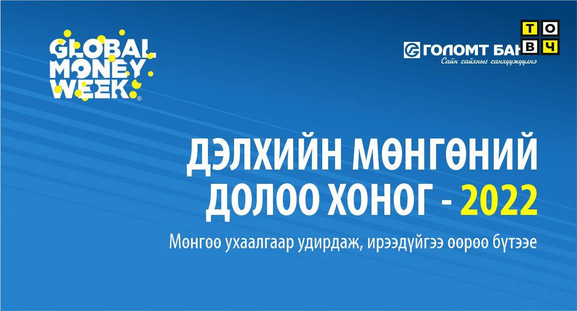 Харин манай улсын хувьд “Дэлхийн мөнгөний долоо хоног-2022” аяныг 3-р сарын 14-28-ны хооронд “Мөнгөө ухаалгаар удирдаж, ирээдүйгээ өөрөө бүтээе” уриан доор хэрэгжүүлэхээр төлөвлөөд байна. Энэхүү аяны хүрээнд төрийн болон төрийн бус байгууллагууд, хувийн хэвшлийн компаниуд нэгдэн олон нийтийн санхүүгийн мэдлэгийг дээшлүүлэхэд чиглэсэн ажлуудыг зохион байгуулах юм.