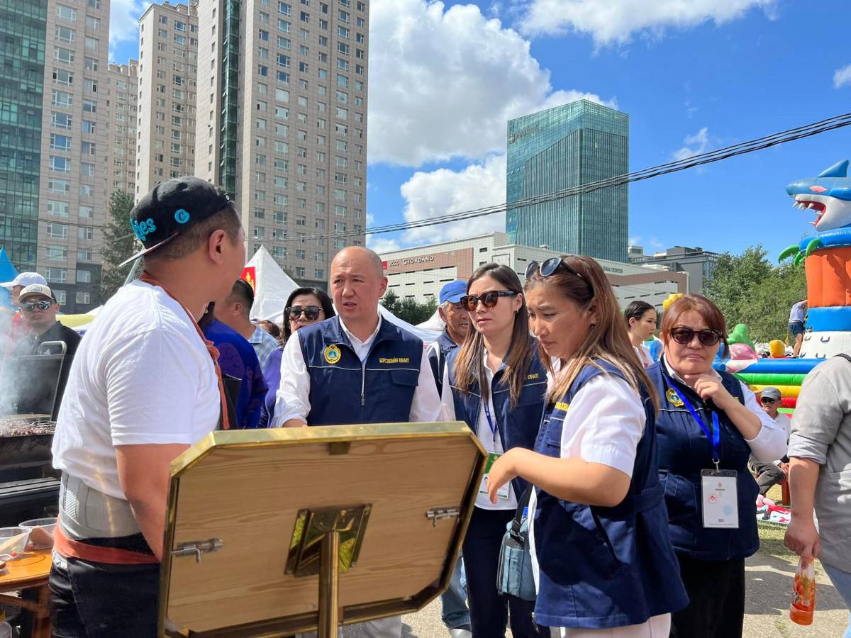 Шалгалтын явцад явуулын 2 лабораторид айраг, сүү, сүүн бүтээгдэхүүн, ундаа, жимснээс дээж авч, шинжилгээнд хамруулж, Төв цэнгэлдэх хүрээлэнгийн нийт 19400 мкв талбайд (13000 гаруй сандал, 23 ариун цэврийн цэгийн 130 гаруй суултуур, орох гарах 18 хаалга, хогийн цэг 1) 0,02%-ын гипохлорид кальци, хлорсептороор халдваргүйтгэл хийхэд хяналт тавьж ажиллаж байна.