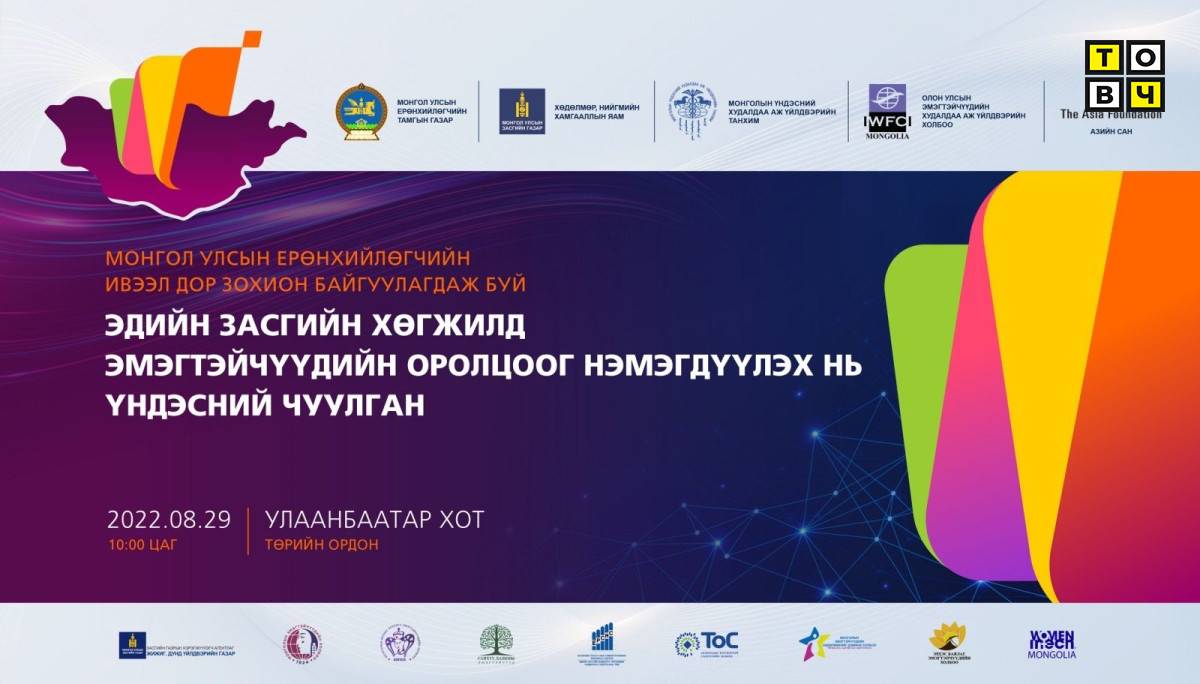 Монголын эмэгтэйчүүдийн хөдөлмөр эрхлэлт, эдийн засгийн оролцоог нэмэгдүүлэх чиглэлээр ойрын хугацаанд авч хэрэгжүүлэх арга хэмжээний талаар хэлэлцэн санал боловсруулж, холбогдох талуудад зөвлөмж хүргүүлэх зорилготой "Эдийн засгийн хөгжилд эмэгтэйчүүдийн оролцоог нэмэгдүүлэх нь" үндэсний чуулганыг Монгол Улсын Ерөнхийлөгчийн ивээл дор Монгол Улсын Ерөнхийлөгчийн Тамгын газар, Хөдөлмөр, нийгмийн хамгааллын яам, Монголын Үндэсний Худалдаа Аж Үйлдвэрийн Танхим, Олон улсын эмэгтэйчүүдийн худалдаа аж үйлдвэрийн холбоо (IWFCI Mongolia), Азийн сан хамтран 2022 оны 8 дугаар сарын 29-ний өдөр Төрийн ордонд зохион байгуулах гэж байна.