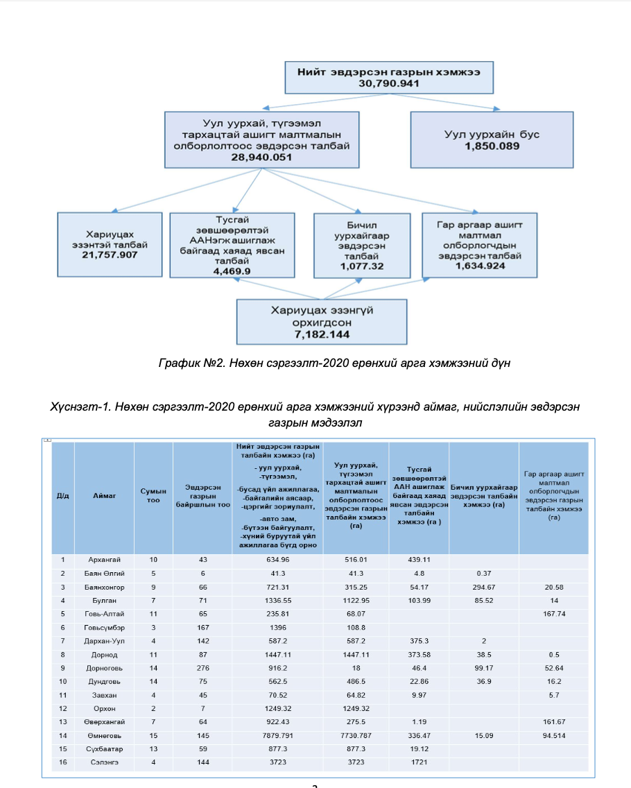 Хууль бус уул уурхайн “золиос” болж эвдэгдсэн газрын хэмжээ 30,790 га талбайг хамарчээ. Энэ нь хамгийн сүүлийн үеийн судалгааны дүн. Эрдэс баялаг, түүнийг олж нээхээс олборлон борлуулах хүртэлх бүхий л шат дамжлага хууль ёсны дагуу өрнөх учиртай. Харамсалтай нь хууль, журмын хэрэгжилт хангалтгүй, түүнийг хэрэгжүүлэхээс зайлхийсэн эс үйлдэл болгон байгаль орчинд ихээхэн хор хохирол учруулсаар байна. Тэрчлэн уул уурхайн салбарын хөгжил, нэр хүндэд энэ байдал хамгийн том сөрөг “мессеж” болсоор өнөөдрийг хүрэв.