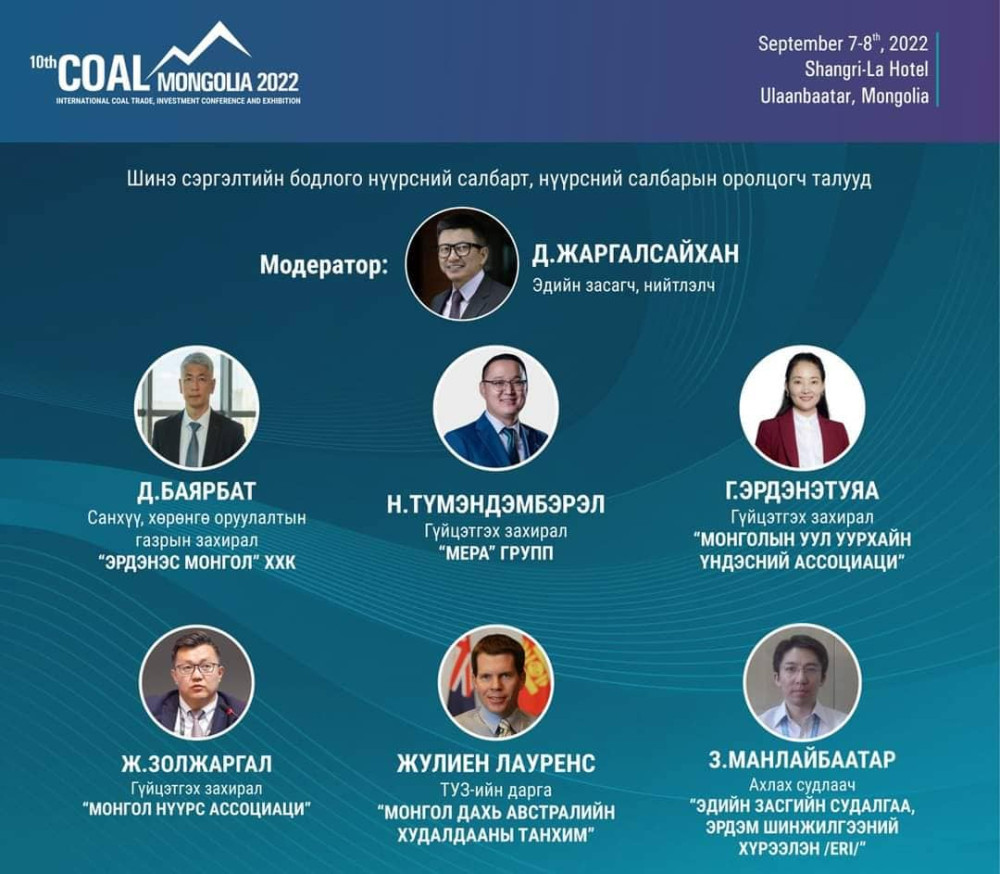 “Сэргэлтийг хамтдаа” уриа дэвшүүлсэн “Coal Mongolia 2022” чуулга уулзалтын энэхүү хэсэгт Монгол дахь Австралийн Худалдааны ТУЗ-ийн дарга, Жулиен Лауренс оролцож, “Австрали, Монгол хоёр улсын нүүрсний экспортын бизнесийн харьцуулалт” илтгэлийг хэлэлцүүлэхээр байна. Энэ хэсгийн сэдвийн хэлэлцүүлгийг Эдийн засагч, нийтлэлч Д.Жаргалсайхан чиглүүлэх юм.