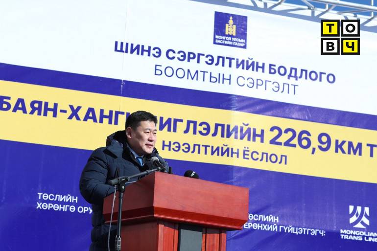 Монгол Улс өнөөдөр Шинэ сэргэлтийн бодлогын нэг жилийн ойн босгон дээр Зүүнбаян-Ханги чиглэлийн 226.9 км төмөр замын бүтээн байгуулалтын ажлыг найман сарын дотор бүрэн дуусгаснаа зарлаж байна.