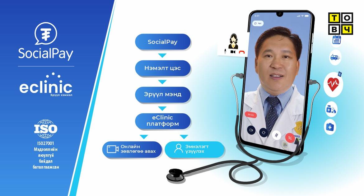Аппликэйшнээрээ дамжуулан олон төрлийн үйлчилгээг хүргэж, тогтмол хөнгөлөлт, урамшууллаар хэрэглэгчдэдээ бэлэг барьдаг SocialPay шинэ оныг угтан нэгэн шинэ үйлчилгээг нэвтрүүлж байна. SocialPay таны эрүүл мэндийг хамгаалж, Eclinic платформтой хамтран эмнэлгийн үйлчилгээг зайнаас авах боломжийг бүрдүүллээ.