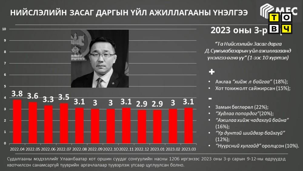 Судалгааны дүнгээс харахад үйл ажиллагаа нь таалагддаггүй улстөрчийг Нийслэлийн Засаг дарга бөгөөд Улаанбаатар хотын захирагч Д.Сумъяабазар тэргүүлжээ.