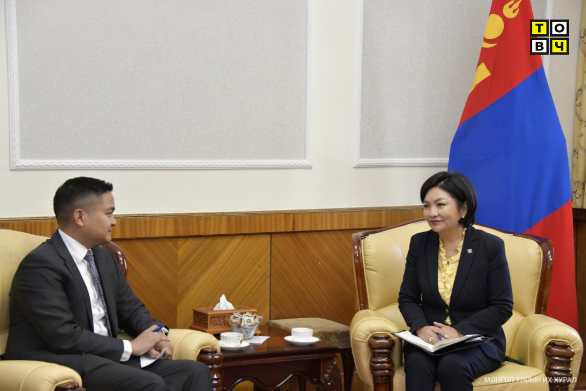 Улсын Их Хурлын Байгаль орчин, хүнс, хөдөө аж ахуйн байнгын хорооны дарга Б.Саранчимэг өнөөдөр (2023.05.22) АНУ-аас Монгол Улсад суугаа Элчин сайд Ричард Буанганыг хүлээн авч уулзан, байгаль орчин, ногоон хөгжлийг дэмжих, хүнсний аюулгүй байдал болон холбогдох хууль эрх зүйн орчны талаар харилцан санал солилцож, хоёр талаас идэвх санаачилгатай, хүчин чармайлт гаргаж ажиллах талаар ярилцлаа.