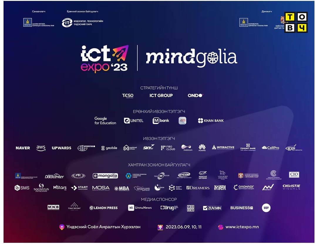 Харилцаа холбоо, мэдээллийн технологийн салбарын хамгийн том, нэгдсэн арга хэмжээ “ICT EXPO-2023” нь “Mindgolia” уриан дор Үндэсний Соёл Амралтын Хүрээлэнд 2023 оны 06 дугаар сарын 09,10,11 -ний өдрүүдэд зохион байгуулагдах гэж байна.