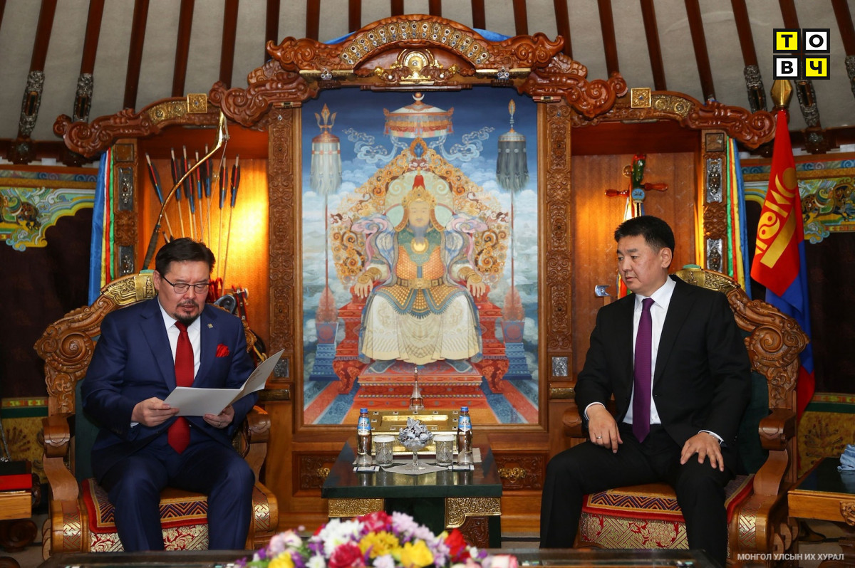 Монгол Улсын Ерөнхийлөгч Ухнаагийн Хүрэлсүхэд Улсын Их Хурлын дарга Гомбожавын Занданшатар Улсын Их Хурлаас баталсан Монгол Улсын Үндсэн Хуульд оруулсан өөрчлөлтийг Монгол Улсын Үндсэн Хуульд нэмэлт, өөрчлөлт оруулах журмын тухай хуулийн 18 дугаар зүйлийн 11 хэсэгт заасан журмын дагуу биечлэн хүргэж, танилцуулав.