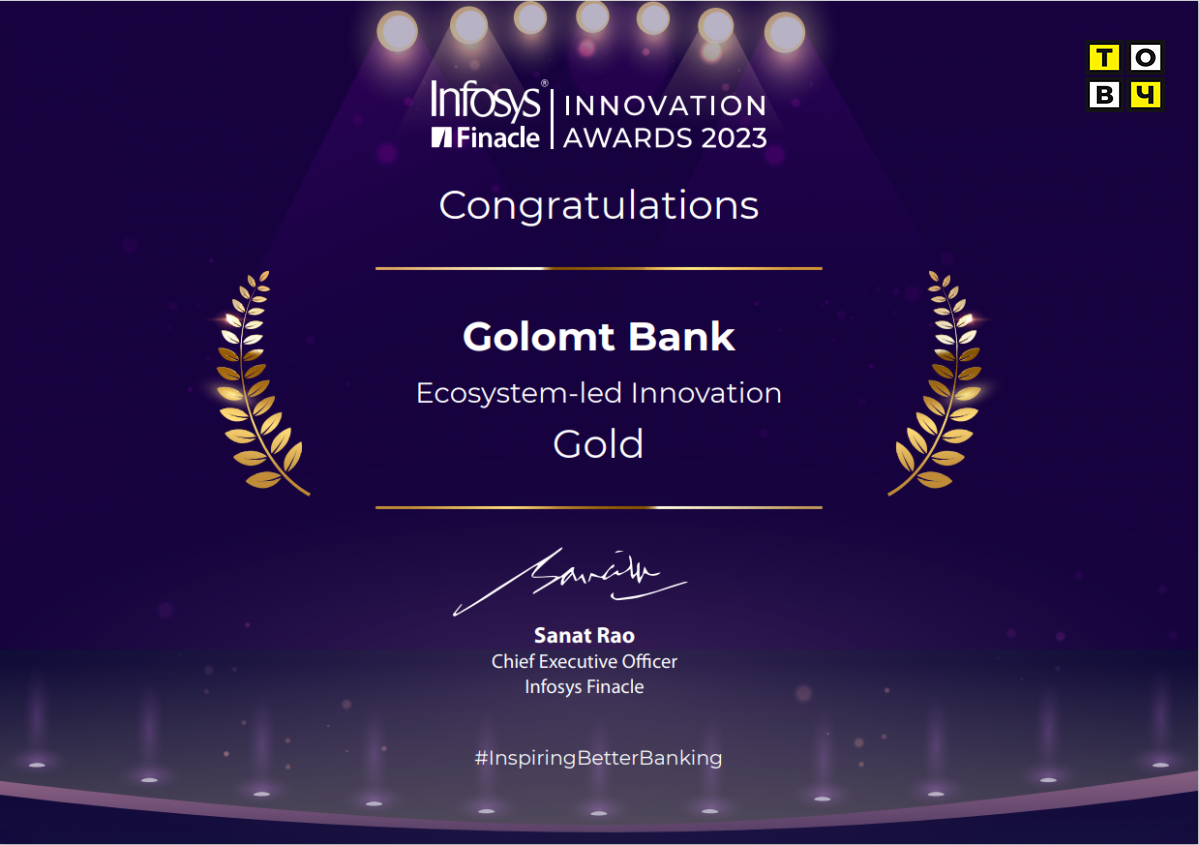 Дижитал банкны шийдэл, программ хангамжийн үйлчилгээгээр салбартаа тэргүүлэгч, EdgeVerve Systems-ийн салбар Infosys Finacle компаниас жил бүр зохион байгуулдаг “Infosys Finacle Innovation Awards – 2023” арга хэмжээнд Голомт банкийг Нээлттэй банкны API платформыг амжилттай хэрэгжүүлж, Монгол Улсдаа өргөн цар хүрээг хамарсан, тогтвортой дижитал эдийн засгийг бий болгож байгааг нь өндрөөр үнэлж “Ecosystem-led Innovation” төрөлд шилдгээр шалгарууллаа. Энэ жилийн хувьд инновацид анхаарлаа хандуулан өөрчлөлт шинэчлэлд үргэлж бэлэн байж, дижитал шилжилтийг хурдтайгаар хийж буй дэлхийн шилдэг банкнуудыг нийт 10 төрөлд тодруулжээ.