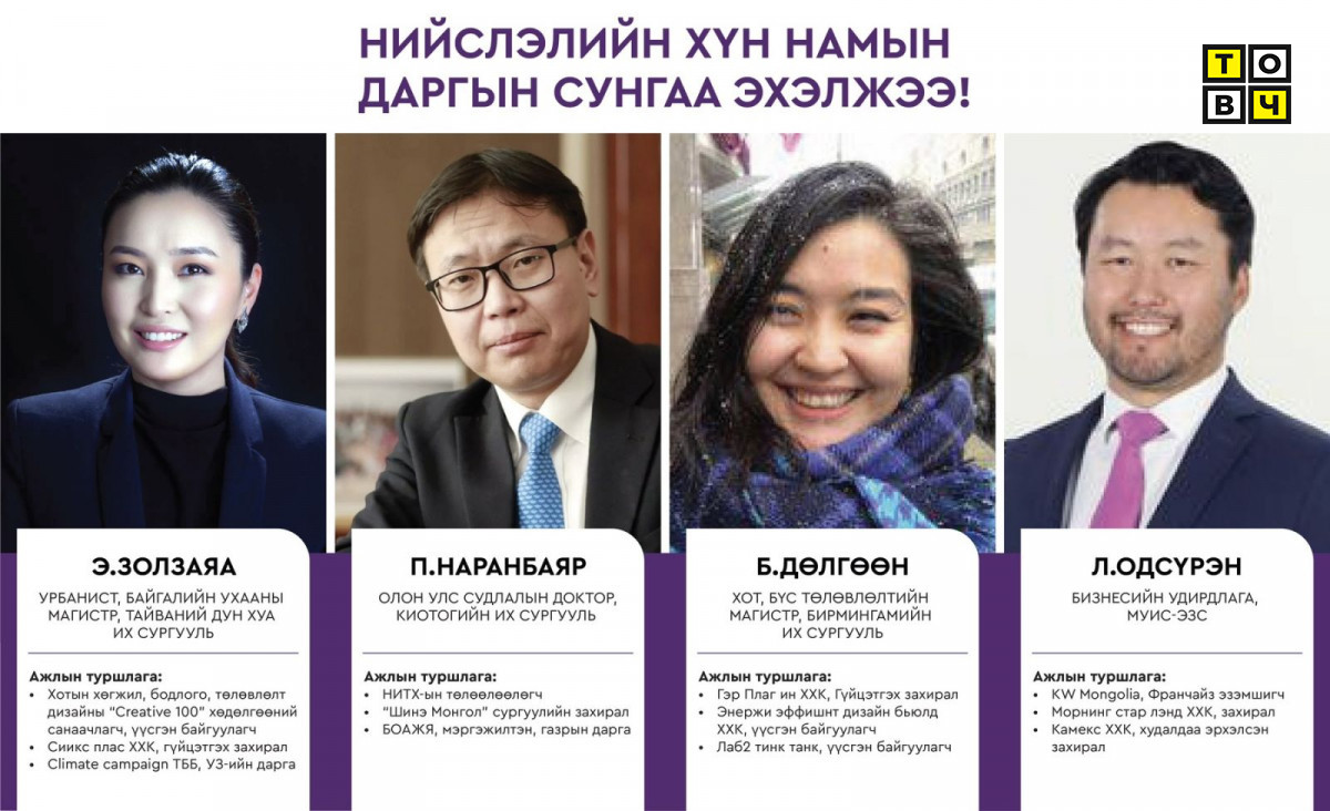 Нийслэлийн ХҮН намын Шинэ даргын сонгуульд Э.Золзаяа, П.Наранбаяр, Б.Дөлгөөн, Л.Одсүрэн нар нэр дэвшихээр болсон байна. Тэдний ажлын туршлагаас товч танилцуулъя: