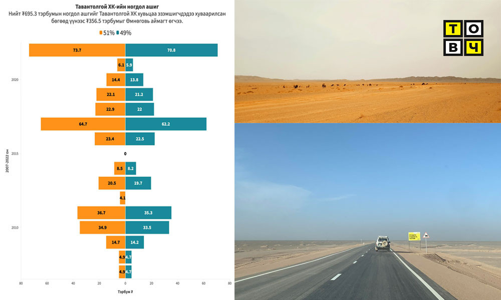 Даланзадгадаас Гурвантэс хүрэх замыг 2012 оноос хойш бараг 12 дахь жилдээ тавьж байна. Гол эх үүсвэр нь Tavantolgoi JSC - ТаванТолгой ХК-н ногдол ашиг. 2007 оноос хойш аймагт 350 гаруй тэрбумын ногдол ашиг төлсөн. Замын өртгөөр тооцож үзвэл энэ мөнгөний бараг 50-60%-тай тэнцэх мөнгө энэ зам руу шингэсэн гэсэн үг. Олон жилийн дунджаас харвал ер нь Тавантолгойн ногдол ашгийн орлого орон нутгийн төсвийн орлогын 20-30%-ийг бүрдүүлдэг. Үүгээрээ #Өмнөговь аймгийн төсөв бусад орон нутгаас онцлогтой.