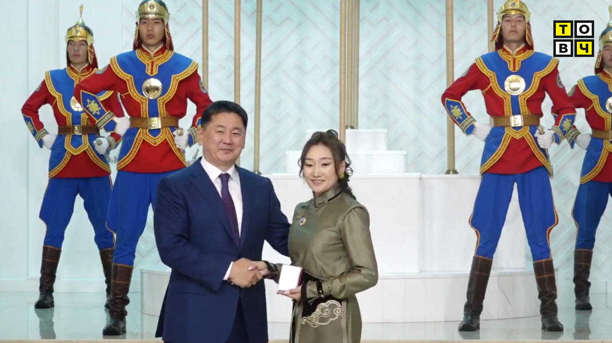 Монгол Улсын Ерөнхийлөгч У.Хүрэлсүх ээжүүдэд “Эхийн алдар” одон гардуулж байна