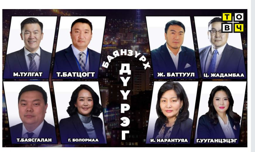 6. Хүний их эмч Г.Ууганцэцэг саяхан АН-д орсон. Сүүлийн үед утааны асуудлыг эрчимтэй хөндөж байгаа. Мөн хар тугалганы хор хөнөөлийг ч олон нийтэд танилцуулж байгаа нэгэн. БЗД-т нэр дэвшихээр горилж байгаа ч урьд урьдны сонгуулийн жишгийг харвал хэн нэгэн тооноор орж ирээд түүний мандатыг булаах магадлалтай.
