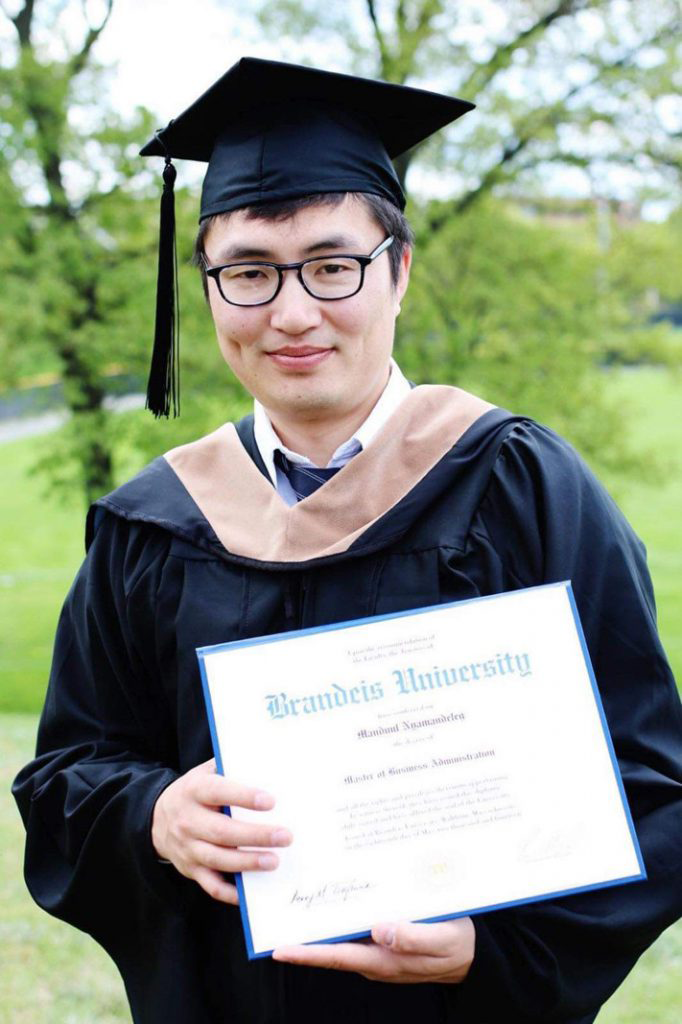 Монгол Улсын Засгийн газар олон улсын зах зээлд Сингапурын хөрөнгийн биржид бүртгэлтэй 1.5 тэрбум ам.долларын “Чингис” бонд гаргаж, улсын төсвийн зургааны нэгтэй тэнцэх хэмжээний том мөнгө орж ирсэн 2012 онд тэрбээр Фулбрайтын тэтгэлгийн шалгуурт тэнцэж, Америкийн Брэндайзын их сургуулийн Бизнесийн удирдлагын магистрт сурахаар явсан. 2014 онд мастераа хамгаалаад Сангийн яаманд буцаж орох төлөвлөгөөгүй, бизнесийн салбарт карьер хөөх бодолтой ирэв.