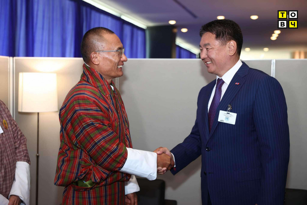 АНУ-ын Нью-Йорк хотноо болж буй НҮБ-ын Ерөнхий Ассамблейн 79 дүгээр чуулганд оролцож буй Монгол Улсын Ерөнхийлөгч Ухнаагийн Хүрэлсүх 2024 оны 09 дүгээр сарын 22-ны өдөр Бутаны Хаант Улсын Ерөнхий сайд Цэрэн Тобгайг хүлээн авч уулзав.