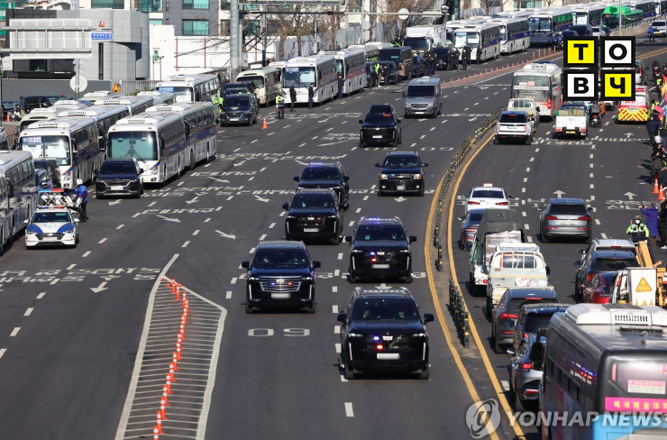 Телевизийн шууд дамжуулж буйг үзэхэд, Юн Сог Ёлийг суулгасан автомашин ба дагалдах цуваа Сөүлийн төв дэх ерөнхийлөгчийн ордноос гарч, тус хотоос өмнө зүгт орших Гвачон хот дахь CIO-ын төв байрыг зорьжээ.