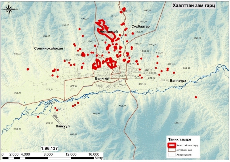 Гэр хорооллын нийт талбай 232.06 км2 талбайг эзэлдэг ба өнөөгийн байдлаар ашиглагдаж байгаа зам, гудамж талбайгаар зорчиход гэр хорооллын 10 хувь нь буюу 20 гаруй км2 талбай нь хаалттай, том оврын аврах, гал түймэр унтраах тусгай зориулалтын автомашин зорчих, эргэх, очих боломжгүй, хаягжилт байхгүй, үерийн усанд өртөмтгий зэрэг эмзэг байдалд нөлөөлөх хүчин зүйлсийг гаргасан байна. Судалгаагаар гал унтраах автомашин зорчих боломжгүй хаалттай зам, мухар гудамжны судалгааг нийслэлийн 6 дүүргийн хэмжээнд судлан гаргасан байна.