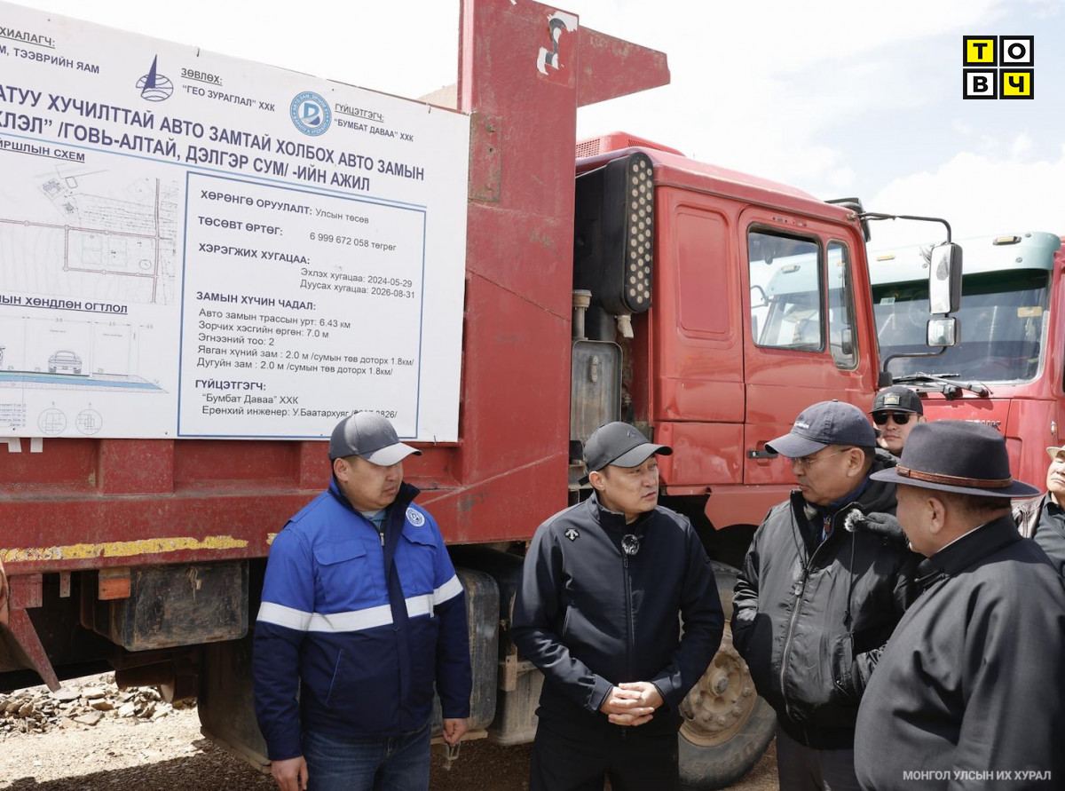 Улсын Их Хурлын дарга Д.Амарбаясгалан өнөөдөр /2025.05.04/ Говь-Алтай аймгийн Дэлгэр сумыг хатуу хучилттай авто замаар холбох барилгын ажлын явцтай танилцлаа. Баянхонгор-Говь-Алтайн авто замаас Дэлгэр сумын төв хүртэлх 6.43 км авто замын бүтээн байгуулалтыг улсын төсвийн хөрөнгө оруулалтад тусгаж, барилга угсралтын ажил үргэлжилж байна. Явган хүний болон дугуйн зам зэргээс бүрдэх хоёр эгнээ авто замыг энэ онд дуусгахаар ажиллаж буй талаар гүйцэтгэгч компанийнхан тайлбарлаж байлаа.