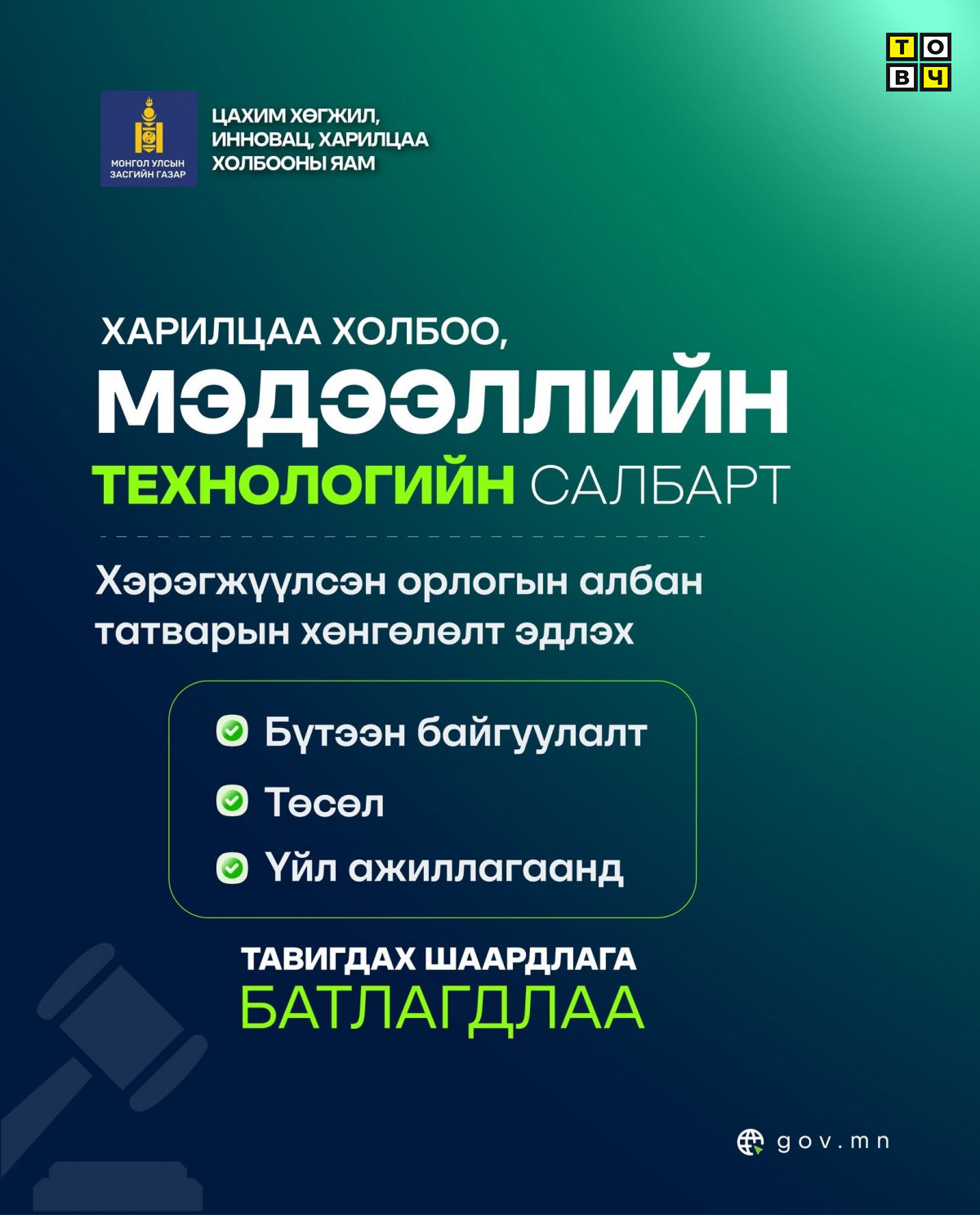 Цахим хөгжил, инновац, харилцаа холбооны сайдын 2025 оны 05 дугаар сарын 09-ний өдрийн А/79 дүгээр тушаалаар “Хөнгөлөлт эдлэх бүтээн байгуулалт, төсөл, үйл ажиллагаанд тавигдах шаардлага”-ыг баталлаа.