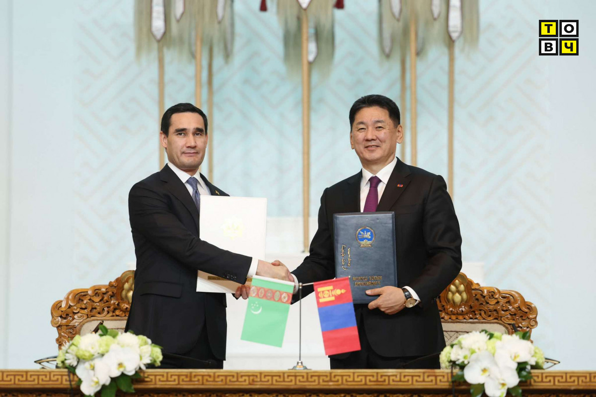 Айлчлалын хүрээнд Монгол Улсын Ерөнхийлөгч У.Хүрэлсүх, Туркменистан Улсын Ерөнхийлөгч Сердар Бердымухамедов нар “Монгол, Туркменистаны хамтын ажиллагааг хөгжүүлэх тухай хамтарсан мэдэгдэл”-д гарын үсэг зурлаа.