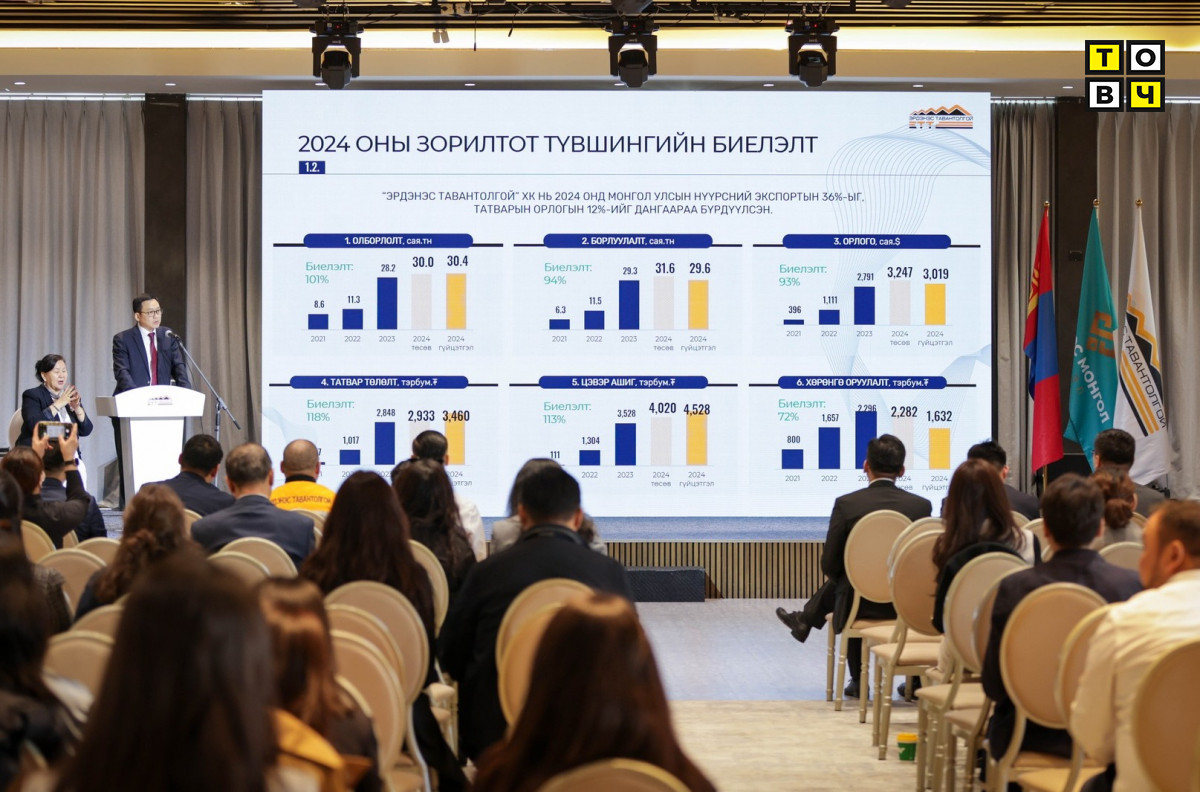 Компанийн Гүйцэтгэх захирлын үүрэг гүйцэтгэгч Х.Мөнхжаргал 2024 оны үйл ажиллагааны тайланг танилцууллаа. Тайланд: “Эрдэнэс Тавантолгой” ХК 2024 онд 30.4 сая тонн нүүрс олборлож, 29.6 сая тонн нүүрс борлуулж, 10.3 их наяд төгрөгийн борлуулалтын орлоготой, 4.5 их наяд төгрөгийн цэвэр ашигтай ажиллаж Монгол Улсын төсөвт 3.5 их наяд төгрөгийн татвар хураамж төвлөрүүлж, нийт хувьцаа эзэмшигчдэд 2024 оны цэвэр ашгаас 3.9 их наяд төгрөгийн ногдол ашиг хуваарилсныг онцоллоо. Мөн 2021-2022 онд дотоодын зах зээлд гарсан ЭТТ-бондын төлбөр 981.6 тэрбум төгрөгийг компанийн өөрийн эх үүсвэрээр хугацаанд нь буюу 2024 онд бүрэн төлж барагдуулсан, нийгмийн хариуцлага хамтын ажиллагааны хүрээнд орон нутгийн хөгжлийг дэмжиж, боловсрол, эрүүл мэнд, байгаль орчны чиглэлээр 2024 онд 5.7 тэрбум төгрөгийн хөрөнгө оруулалт хийсэн түүхэн амжилттай ажилласан жил байсныг онцлон тэмдэглэлээ.