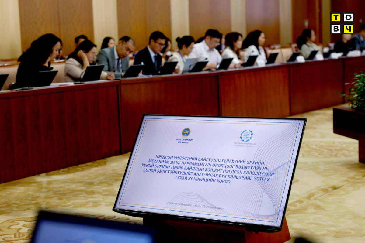 Монгол Улсын Их Хурлаас Олон улсын парламентын холбоо (ОУПХ)-той хамтран зохион байгуулж буй Нэгдсэн Үндэстний Байгууллага (НҮБ)-ын хүний эрхийн механизмуудад парламентын оролцоог бэхжүүлэх асуудлаарх уулзалт-хэлэлцүүлэг өнөөдөр /2025.06.23/ Төрийн ордонд эхэллээ.