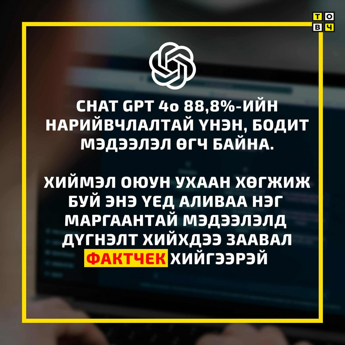 Хиймэл оюун ухаан хөгжиж буй энэ цагт та аливаа нэг маргаантай сэдвийг заавал “фактчек” хийж олон улсын нотолгоонд суурилсан судалгааны үндэслэлтэйгээр дүгнэлт хийж байх нь чухал юм гэдгийг энэхүү мэдээллээр хүргэж байна.