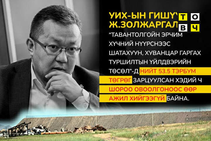 Монгол Улсын Их Хурлын гишүүн, Монгол Улсын Их Хурлын Инновац, цахим бодлогын байнгын хорооны дарга Ж.Золжаргал нь 2024 оны УИХ-ын сонгуулиар ХҮН намаас Баянгол дүүргийн 9 дүгээр тойрогт сүр дуулиантай нэр дэвшиж, өөрийгөө үнэнч, шударга, эгэл жирийн инженер гэж сурталчилж, ард түмнийг төлөөлөн сонгогдож байсан нь саяхан. Гэтэл УИХ-ын гишүүнээр сонгогдоод удаагүй байхдаа цаасан дээрх төсөл барьж, сонгосон ард түмнийхээ хөдөлмөрлөж олсон мөнгөнөөс, татвар төлөгчдийн орлогоос нэг,хоёр, 10, 20 бус, бүхэл бүтэн 53.5 тэрбум төгрөгийг хувьдаа завшсан асуудлыг Авлигатай тэмцэх газраас шалгах хэрэгтэй. Энэ хэргийг авлигын асуудлаар шалгаад ч зогсохгүй УИХ-ын гишүүний ёс зүйн хэм хэмжээг мөрдүүлж ажиллахад УИХ-ын гишүүний бүрэн эрхийн асуудал ч яригдаж болохуйц ноцтой баримт ил болоод байна.