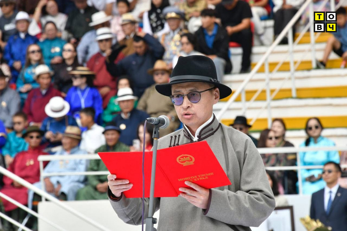 Увс аймгийн ард иргэд Та бүхэн Ханхөхий, Чандмань хайрхан, Хархираа, Түргэний их уулсаа уртын дуу, уухайн түрлэгээр цуурайтуулан баясгаж, Увс, Хяргас, Ачит, Үүрэг, Айраг их уст нуураа хүчит бөхчүүдийнхээ дэвэлтээр долгиолуулан, давлагаалуулж, хангай, говь, хээр талаа хурдан хүлгүүдийнхээ тоосоор мялааж, түүхт ойн их баяраараа дэлгэр сайхан наадахын ерөөл өргөе.