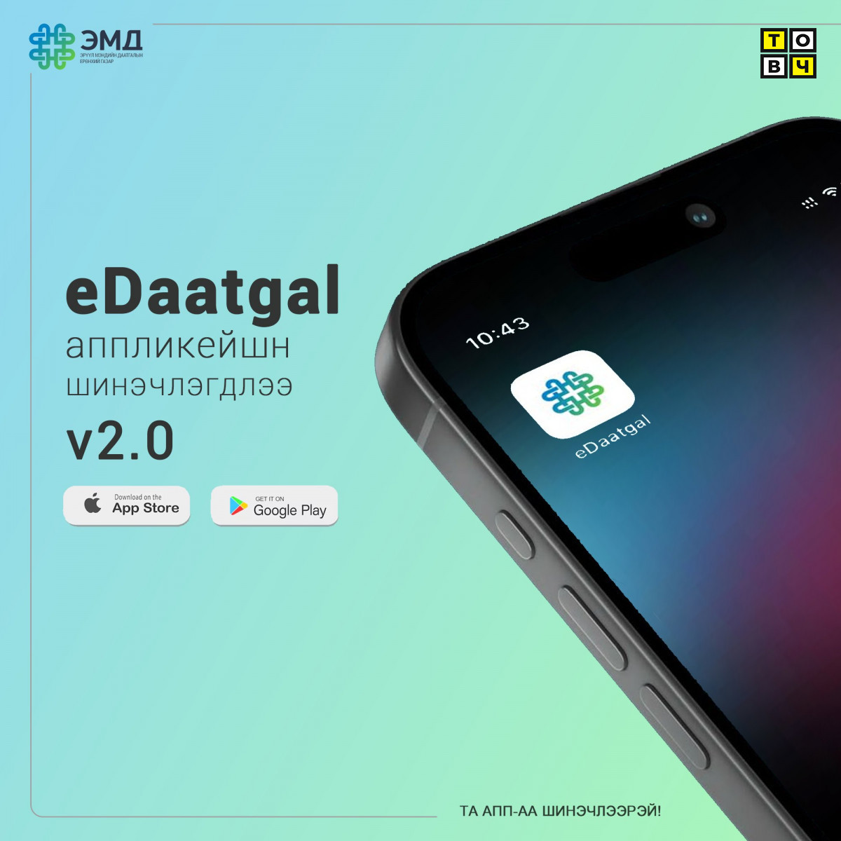 Эрүүл мэндийн даатгалын ерөнхий газар Edaatgal аппликейшн 2.0 хувилбарыг шинэчлэн гаргасан. Шинэчлэн гаргасан Edaatgal аппликейшний онцлогт:
